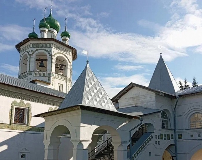 Заедем в Николо-Вяжищский монастырь, стоящий в окрестностях деревни Вяжищи. В конце XIV века сюда пришли благочестивые иноки Евфросин, Игнатий и Галактион, здесь же подвизался архиепископ Новгородский Евфимий. По его указанию на смену деревянной Никольской церкви выстроили каменную, а затем возвели Храм Иоанна Богослова. В XVI и XVII веках монастырю покровительствовали государи – этот период ознаменовался расцветом обители. На территории появился архитектурный комплекс, украшенный уникальными изразцами. Только в ярославских храмах той поры можно увидеть такое количество цветных поливных изразцов, расцветающих на фасадах, и превращающих их в волшебный сад или парадиз. Мы сможем полюбоваться красотой комплекса и приложиться к мощам Святого Евфимия Новгородского.